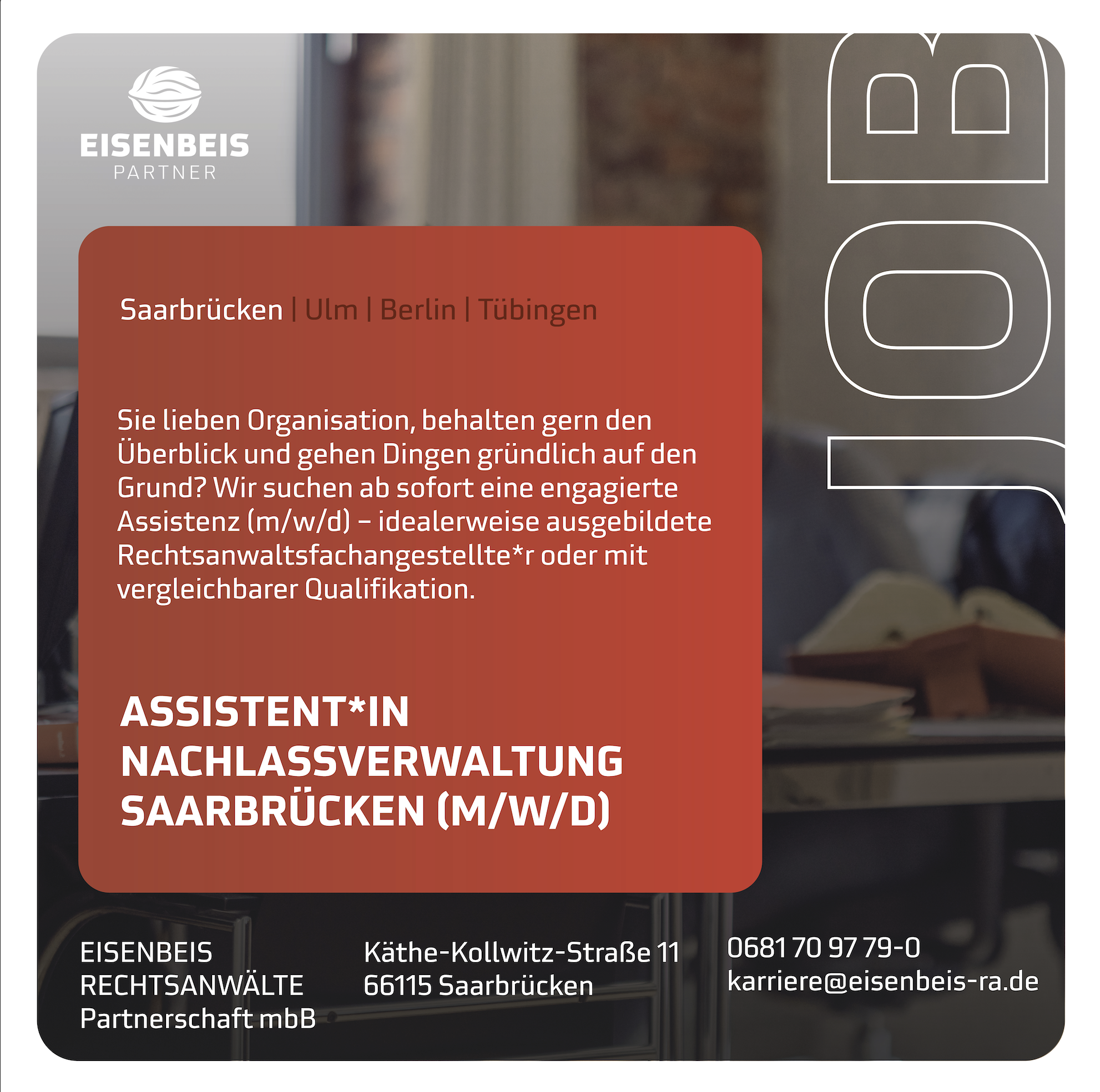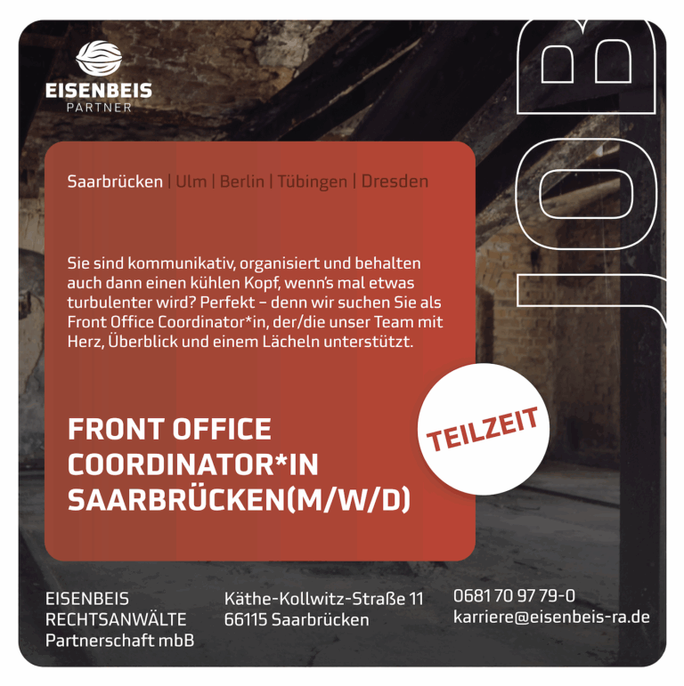 Eisenbeis Partner arbeitet bereits seit über 10 Jahren völlig papierlos. Unsere Mitarbeiter genießen die absolute Wahlfreiheit zwischen Homeoffice und der Arbeit in unseren mit modernster Technik ausgestatteten Kanzleiräumen.